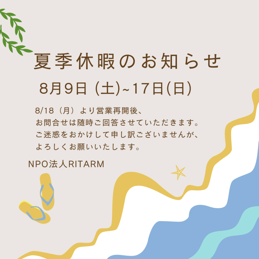 誠に勝手ながら、8月9日(金)~8月17日(土)の期間は、お盆休みのため休業とさせていただきます。