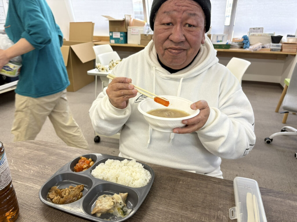 本日の昼食時に皆で作った豚汁を食べました!