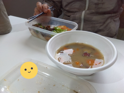 奈良事業所で育てた野菜を大阪事業所で洗ってカットした豚汁です(^^)/
